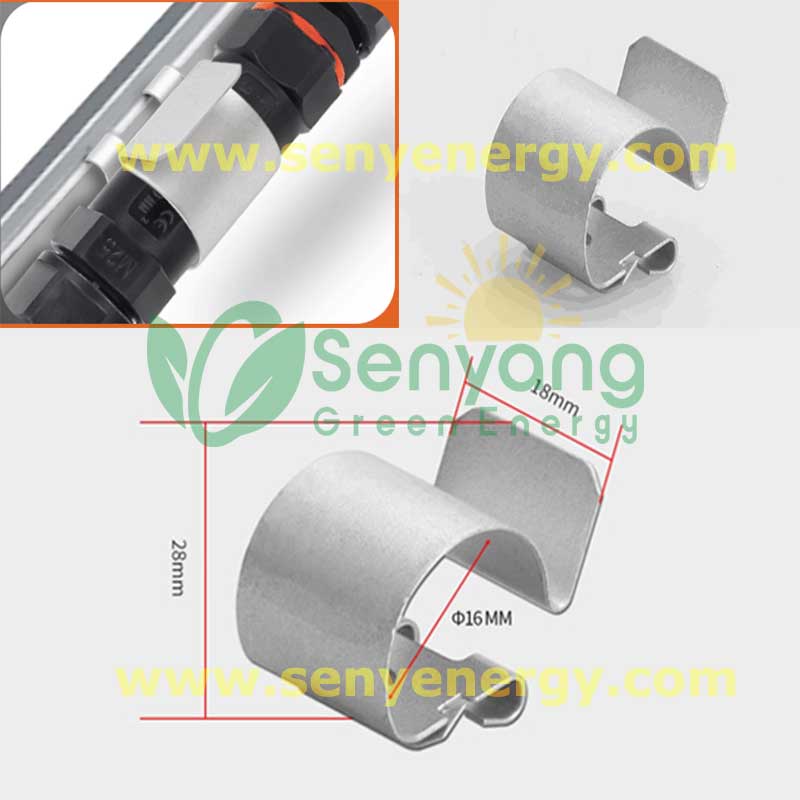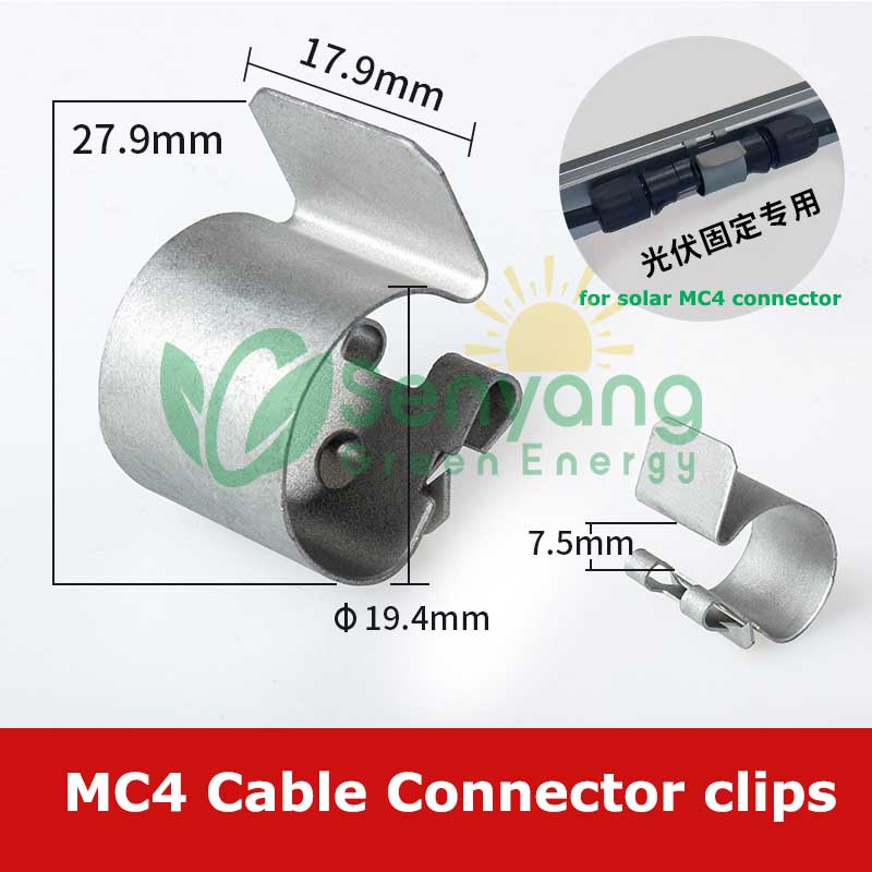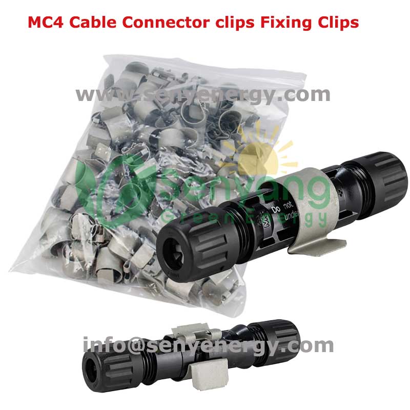 MC4 Cable Connector clips Fixing Clips are specialized clips that securely fasten the MC4 connector junction (the point where the male and female connectors lock together) to hold the connector above or below the PV solar module frame. MC4 cable connector fixing clips play a vital role in solar panel systems, securing MC4 connectors and cables to prevent movement, strain, and potential damage. Properly installed clips enhance the safety and reliability of solar installations.