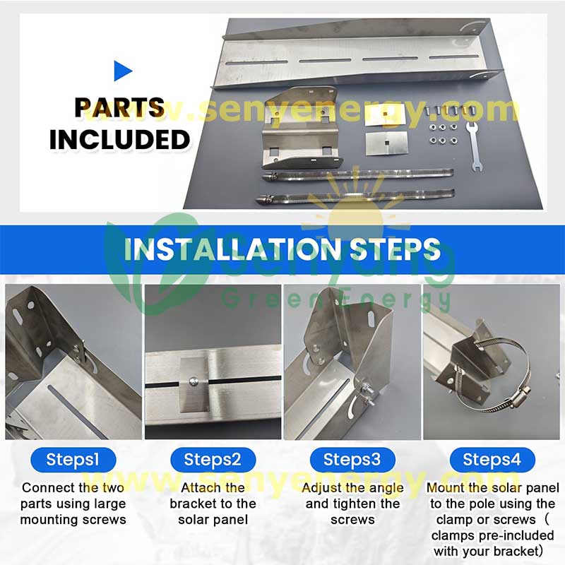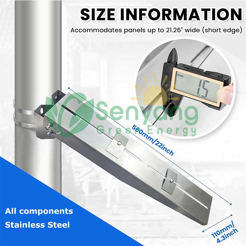 - Enhanced Stability: Wind load: 140km/Hr. Snow loading: 1.4Kn/m ². Comes with 1 fixed bracket,1 tilt arm,4 mounting bolt kits,2 hose clamps.